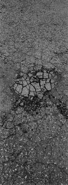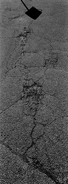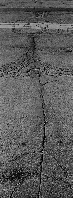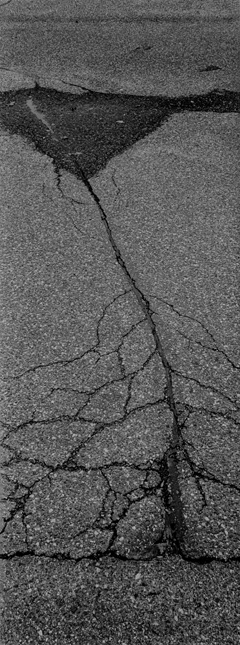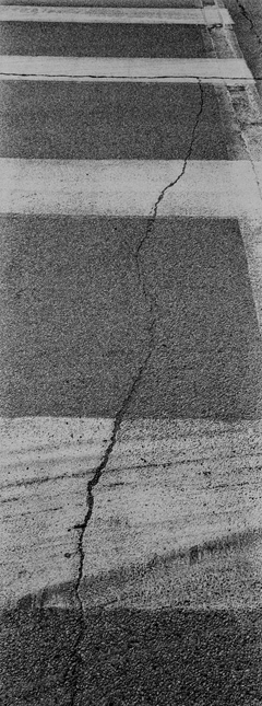 Cracks of the Daily appropriates the form of a traditional Chinese hand-tear calendar, and contains a vast typology of 365 pieces of road crack photograph. The audience is invited to tear down a page and keep it. The tears by their hands leave new cracks on the paper that resemble the cracks in the image. White and physical, this time the cracks are realized and inverted.